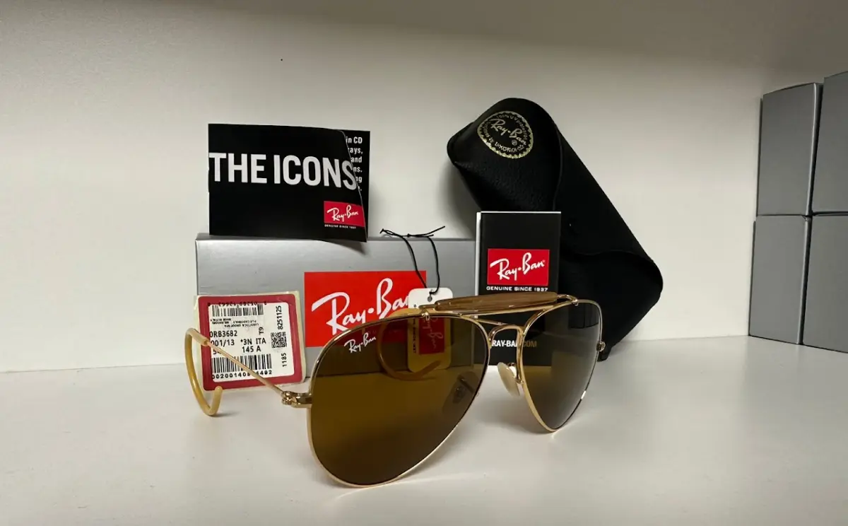 Incluye set original completo: estuche rígido Ray-Ban, paño de microfibra, etiquetas, caja y folleto “The Icons”.