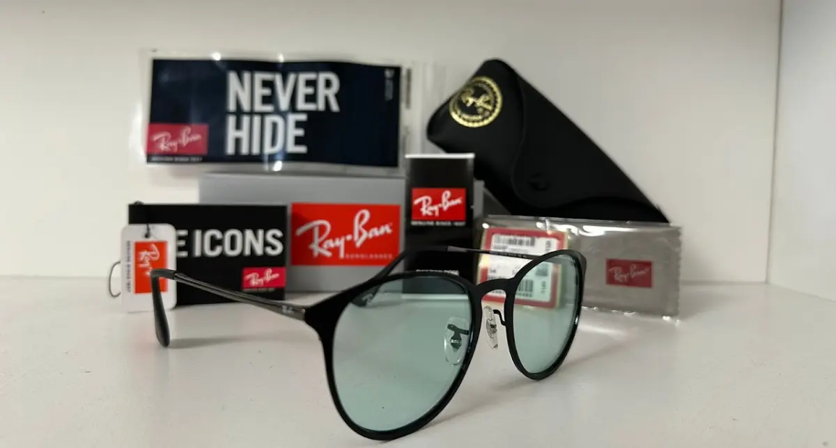 Incluye estuche original Ray-Ban, paño de microfibra, etiquetas y folleto “The Icons”, tal como se muestra en la imagen.